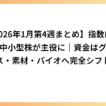 【2026年1月第4週まとめ】指数は停滞も中小型株が主役に|資金はグロース・素材・バイオへ完全シフト