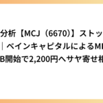 急騰分析【MCJ(6670)】ストップ高水準|ベインキャピタルによるMBO・TOB開始で2,200円へサヤ寄せ相場