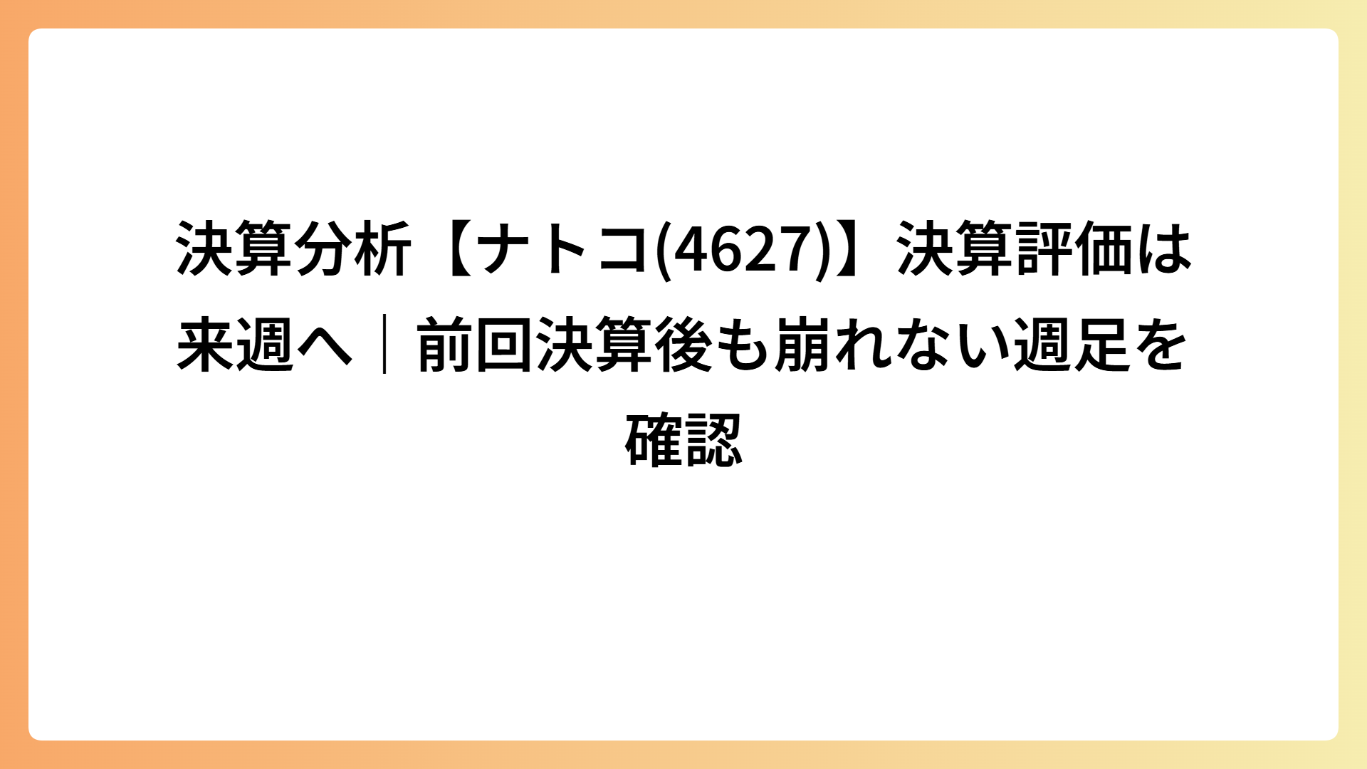決算分析【ナトコ(4627)】決算評価は来週へ|前回決算後も崩れない週足を確認