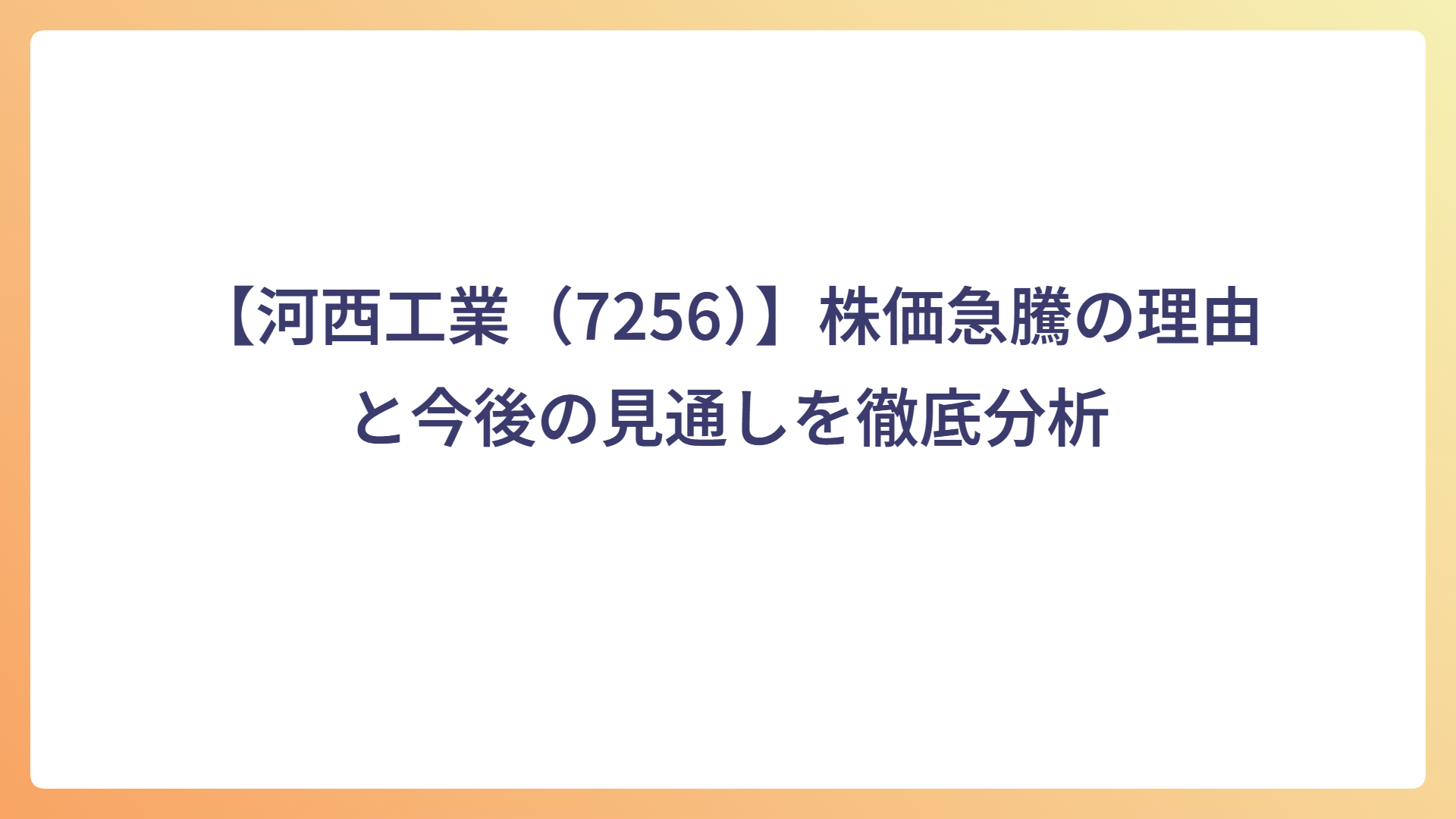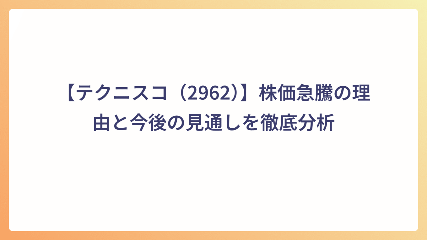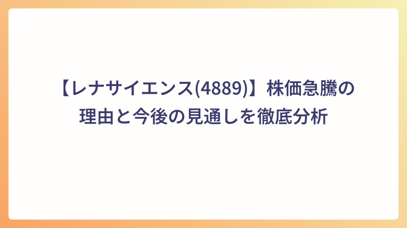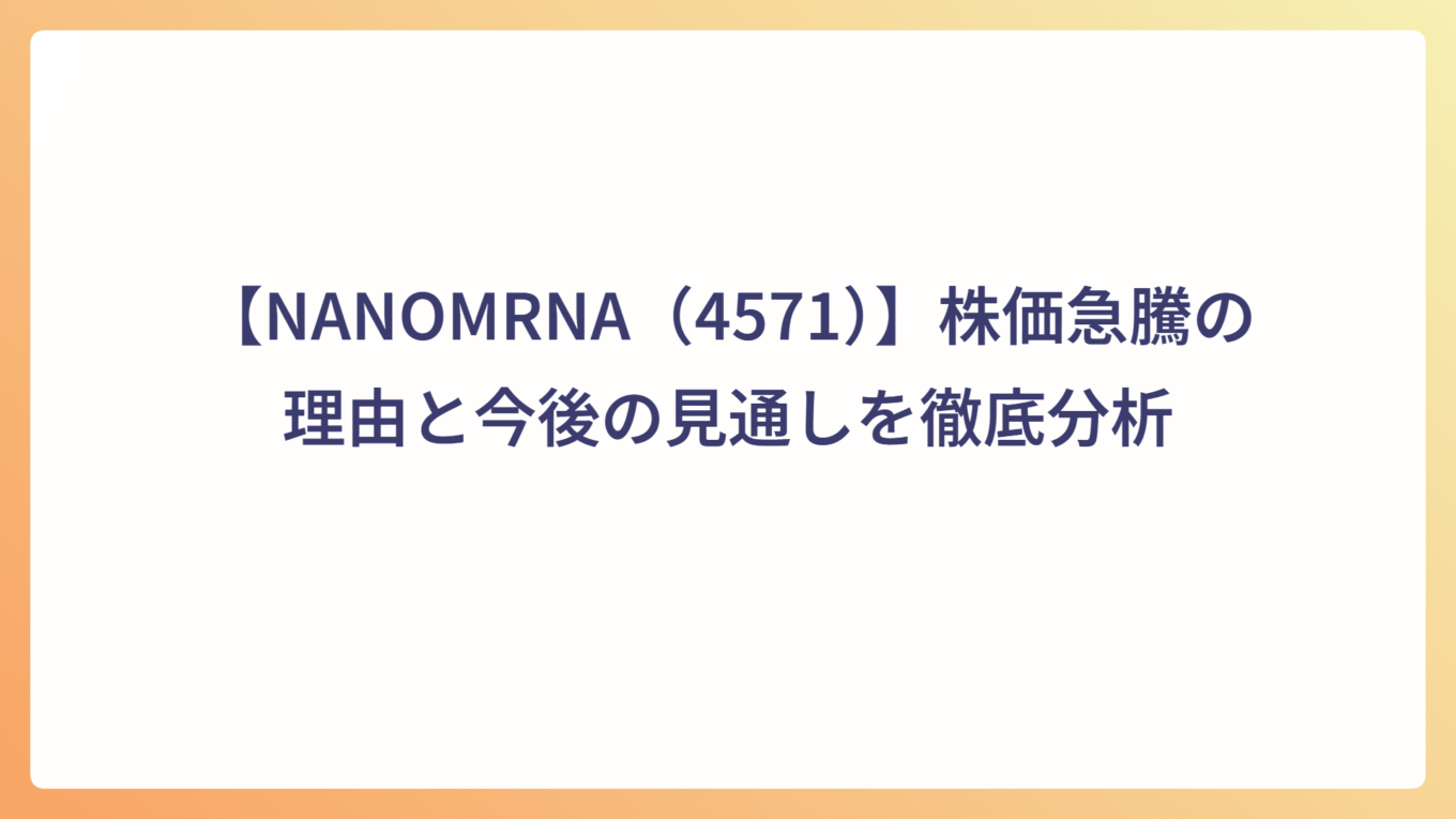 【NANOMRNA(4571)】株価急騰の理由と今後の見通しを徹底分析 2025.10.11 個別株 my-next-goal-is-fire ホワイト企業に転職できたので次はFIREを目指します 【河西工業(7256)】株価急騰の理由と今後の見通しを徹底分析 2025.10.08 個別株 my-next-goal-is-fire ホワイト企業に転職できたので次はFIREを目指します 【レナサイエンス(4889)】株価急騰の理由と今後の見通しを徹底分析 2025.10.07 個別株 my-next-goal-is-fire ホワイト企業に転職できたので次はFIREを目指します 10月6日の日経平均株価が急上昇|政局安定と円安進行でAI・輸出株が買われる 2025.10.06 本日の市場 my-next-goal-is-fire ホワイト企業に転職できたので次はFIREを目指します 【テクニスコ(2962)】株価急騰の理由と今後の見通しを徹底分析 2025.10.05 個別株 my-next-goal-is-fire ホワイト企業に転職できたので次はFIREを目指します 【AppBank(6177)】の上昇理由・事業内容・投資リスクを徹底解説 2025.10.01 個別株 my-next-goal-is-fire ホワイト企業に転職できたので次はFIREを目指します フェリシモ(3396)の株価上昇理由と事業内容・リスクまとめ 2025.10.01 個別株 my-next-goal-is-fire ホワイト企業に転職できたので次はFIREを目指します Link-Uグループ(4446)の株価急騰:急騰理由と今後の展望 2025.09.29 個別株 my-next-goal-is-fire ホワイト企業に転職できたので次はFIREを目指します NCS&A「E.M.O®」の特徴と市場価値|自治体DXを支える次世代システム 2025.09.28 個別株 my-next-goal-is-fire ホワイト企業に転職できたので次はFIREを目指します 自治体向けシステムの最新動向|自治会・町内会のデジタル化で業務効率化 2025.09.28 システム・電気制御 my-next-goal-is-fire ホワイト企業に転職できたので次はFIREを目指します もっと見る