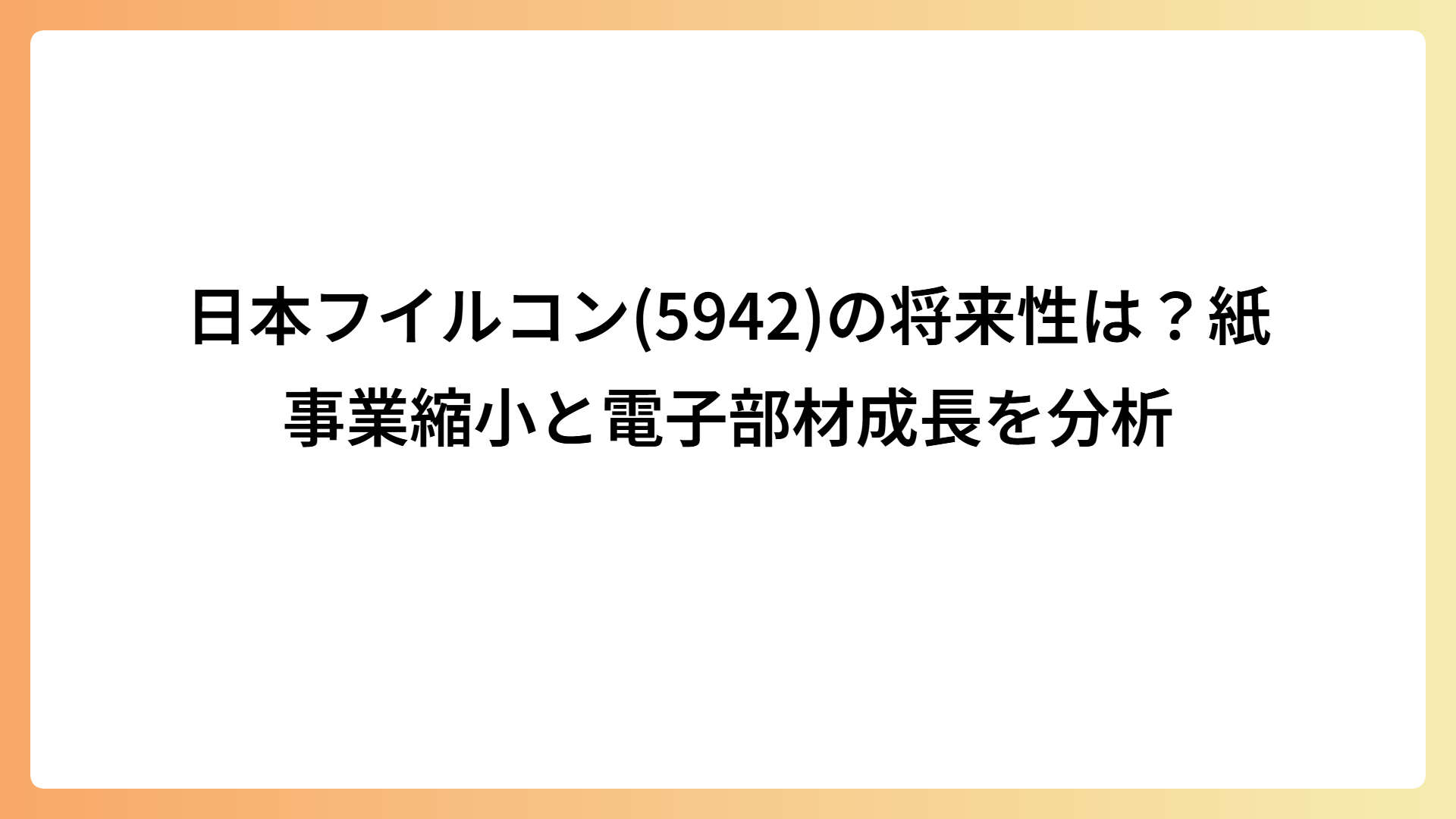 今後の日本フイルコンは、「紙から電子部材へ」の転換を成功させられるかが最大の注目点と言えるでしょう。