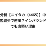 中国人観光客減少は短期的な逆風ですが、ニイタカは“インバウンド全体が減速しても底堅い裏方銘柄”として見る方がよさそうです。