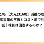 決算分析【大光(3160)】減益の理由は?水産事業の不振とコスト増で利益急減|株価は回復するのか?
