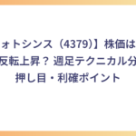 【フォトシンス(4379)】株価は黒字化で反転上昇? 週足テクニカル分析と押し目・利確ポイント