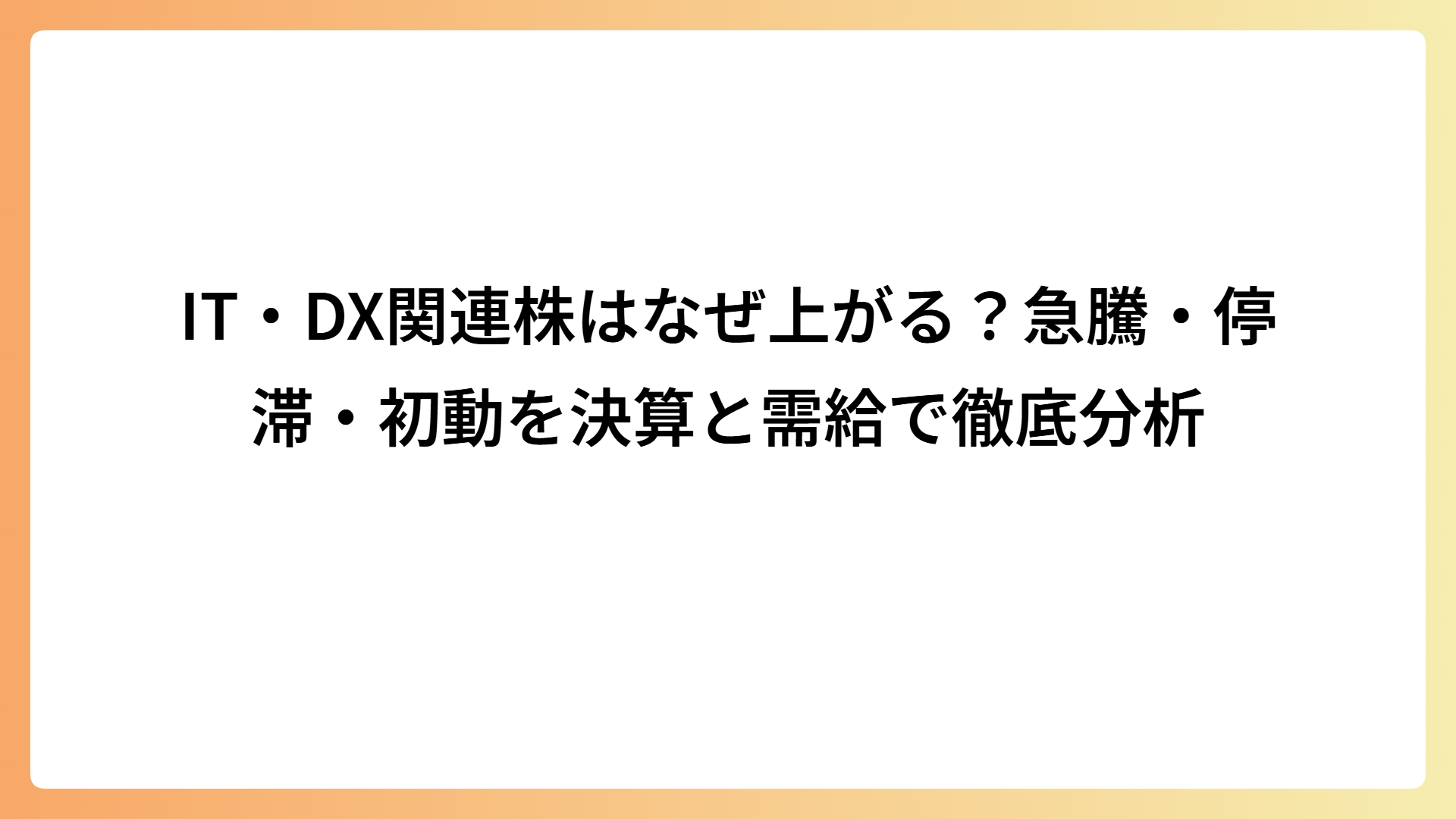 IT・DX関連株全体の動きについては、IT・DX関連株まとめ記事で詳しく解説しています。