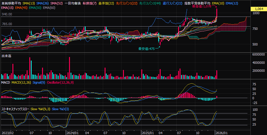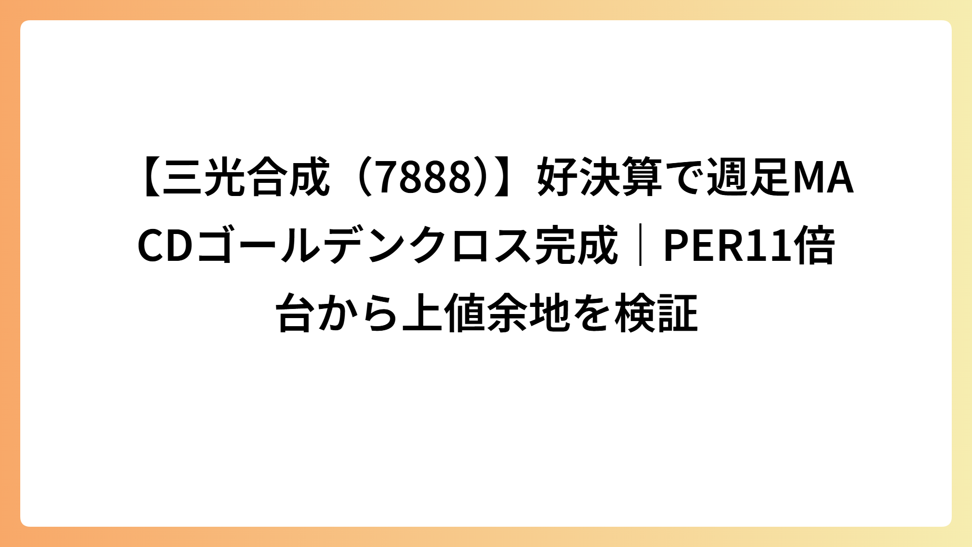 三光合成は、好決算を契機に週足MACDがゴールデンクロスし、