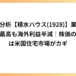 決算分析【積水ハウス(1928)】業績は過去最高も海外利益半減|株価の今後は米国住宅市場がカギ