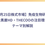 【11月25日株式市場】免疫生物研究所・大黒屋HD・THECOOの注目理由とテーマ別解説
