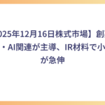 【2025年12月16日株式市場】創薬バイオ・AI関連が主導、IR材料で小型株が急伸
