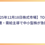 【2025年12月18日株式市場】TOB・AI関連・需給主導で中小型株が急動意