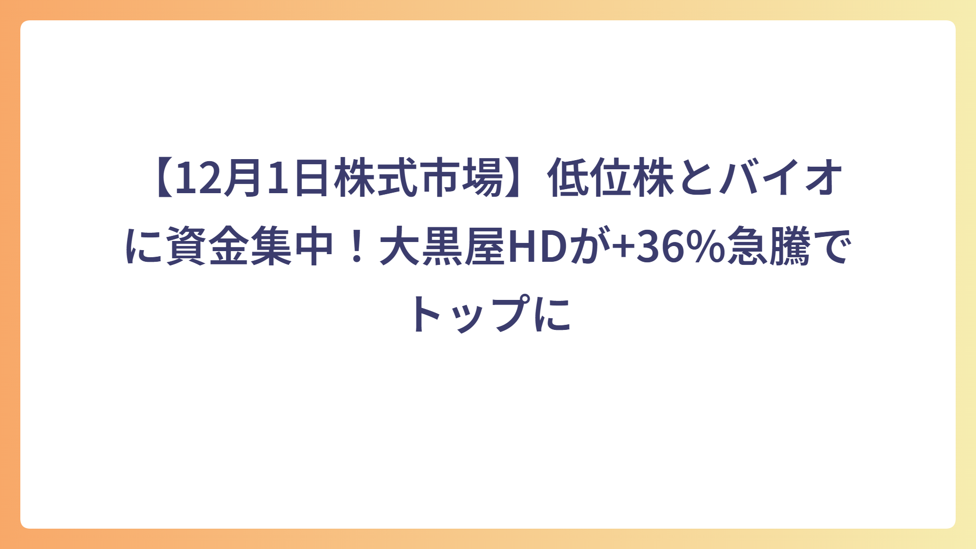 本日の株式市場では、年末特有の薄商いを背景に、バイオ・創薬、DX・IT、リユース関連といったテーマ株に加え、低位・小型株への需給主導の短期資金流入が同時に進行しました。