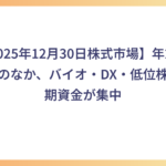 【2025年12月30日株式市場】年末薄商いのなか、バイオ・DX・低位株に短期資金が集中