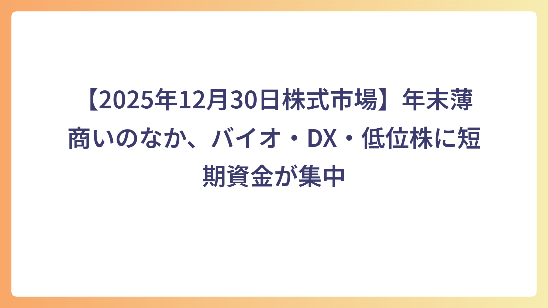 指数の方向感が出にくい局面では、「全体を見るより、どこに資金が集まっているか」を意識した銘柄選別が重要になりそうです。