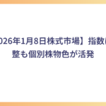 2026年1月8日の東京株式市場は、指数は調整色が強かった一方で、個別銘柄には活発な物色が入る一日となりました。
