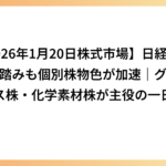 【2026年1月20日株式市場】日経平均は足踏みも個別株物色が加速|グロース株・化学素材株が主役の一日