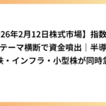 【2026年2月12日株式市場】指数は停滞もテーマ横断で資金噴出|半導体・非鉄・インフラ・小型株が同時急騰