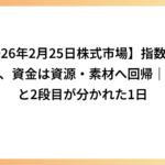 【2026年2月25日株式市場】指数は停滞も、資金は資源・素材へ回帰|主役と2段目が分かれた1日