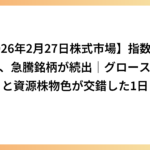 【2026年2月27日株式市場】指数は停滞も、急騰銘柄が続出|グロース回帰と資源株物色が交錯した1日