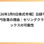 【2026年3月9日株式市場】日経平均4000円急落の理由|セリングクライマックスの可能性