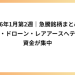 2026年最初の週は、指数に大きな方向感が出ない一方で、明確なテーマ・材料・業績評価に資金が集中する相場となりました。