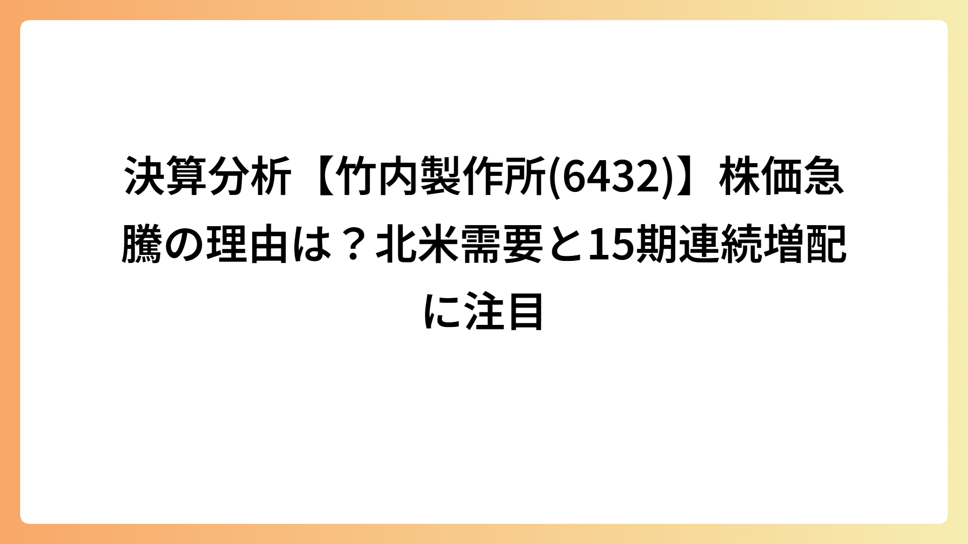 決算分析【竹内製作所(6432)】株価急騰の理由は?北米需要と15期連続増配に注目 2026.04.12 インフラ・エネルギー my-next-goal-is-fire ホワイト企業に転職できたので次はFIREを目指します