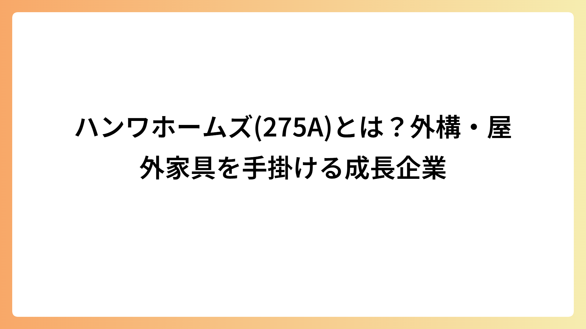 TAG IPO 決算分析【ハンワホームズ(275A)】空間創造事業が牽引|法人案件拡大で利益急増 2026.04.04 テーマ株 my-next-goal-is-fire ホワイト企業に転職できたので次はFIREを目指します ハンワホームズ(275A)とは?外構・屋外家具を手掛ける成長企業 2026.04.04 テーマ株 my-next-goal-is-fire ホワイト企業に転職できたので次はFIREを目指します