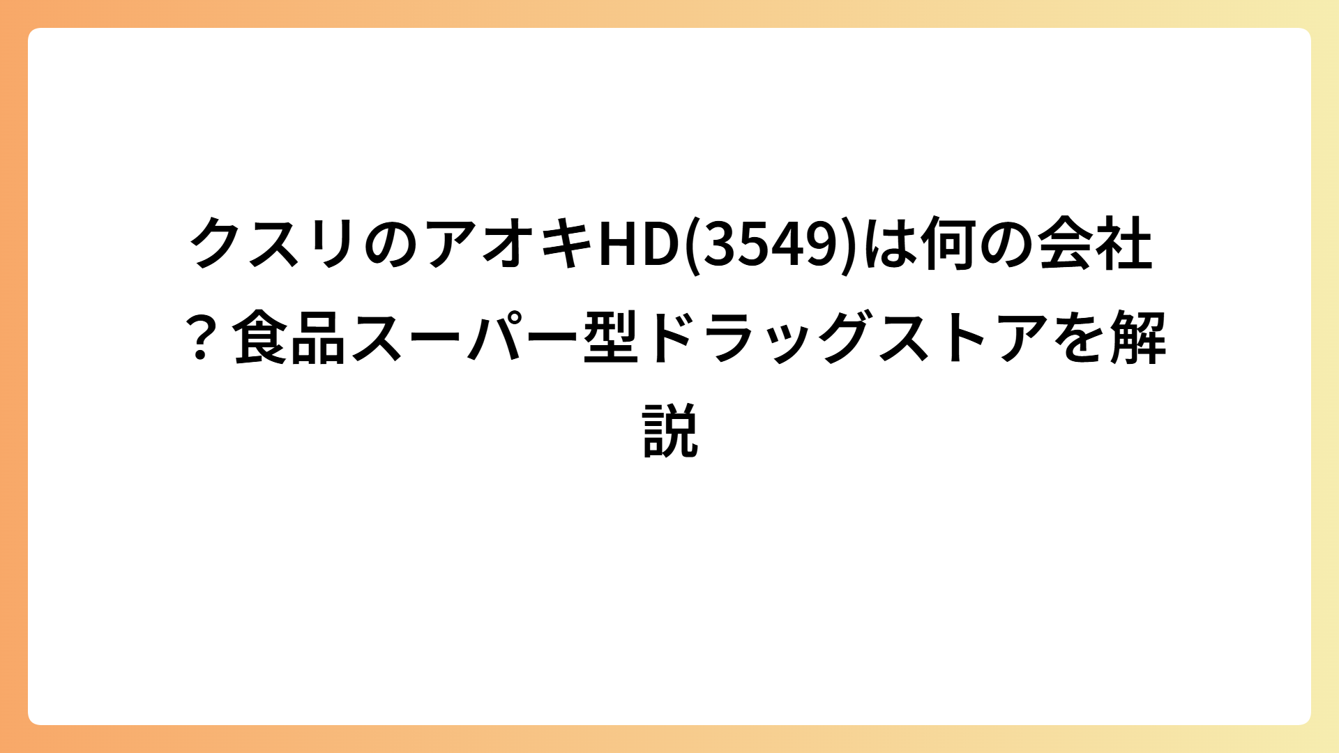 クスリのアオキHD(3549)は何の会社?食品スーパー型ドラッグストアを解説 2026.04.04 テーマ株 my-next-goal-is-fire ホワイト企業に転職できたので次はFIREを目指します