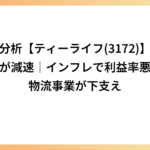 決算分析【ティーライフ(3172)】通販事業が減速|インフレで利益率悪化、物流事業が下支え