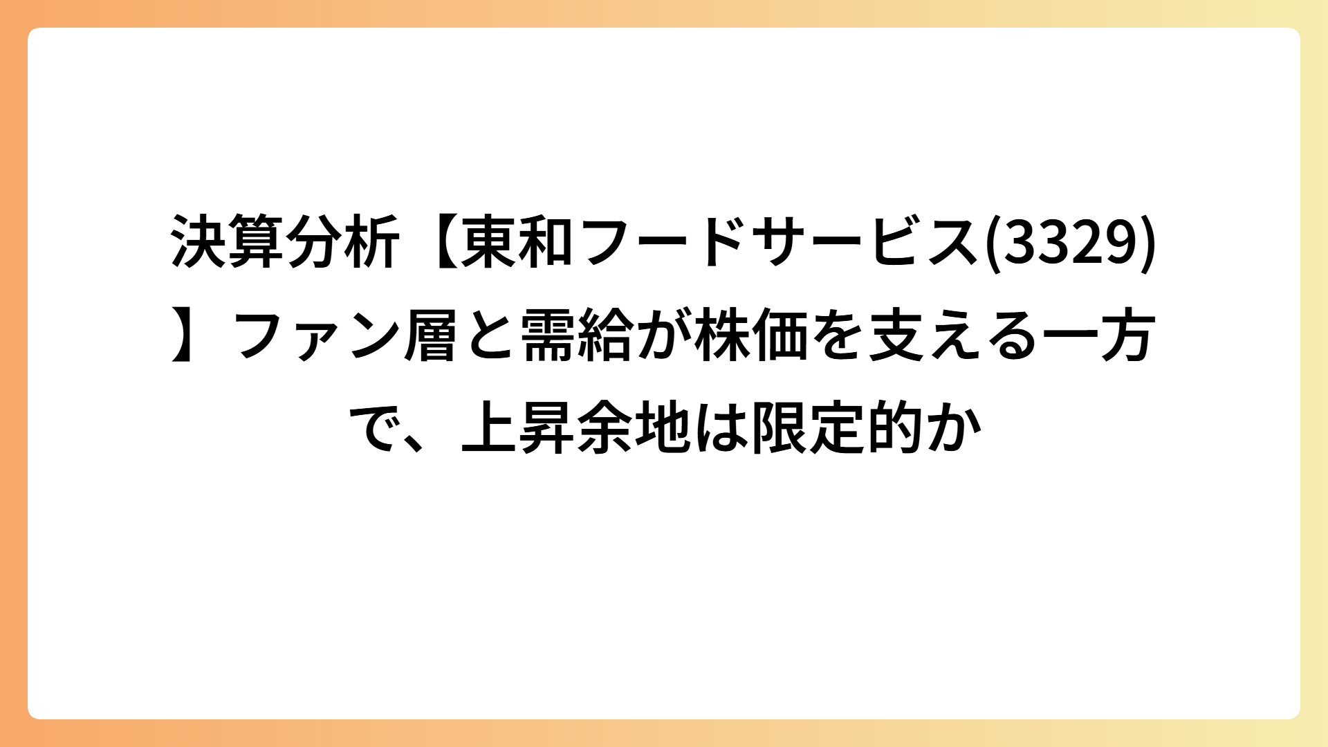 決算分析【東和フードサービス(3329)】ファン層と需給が株価を支える一方で、上昇余地は限定的か