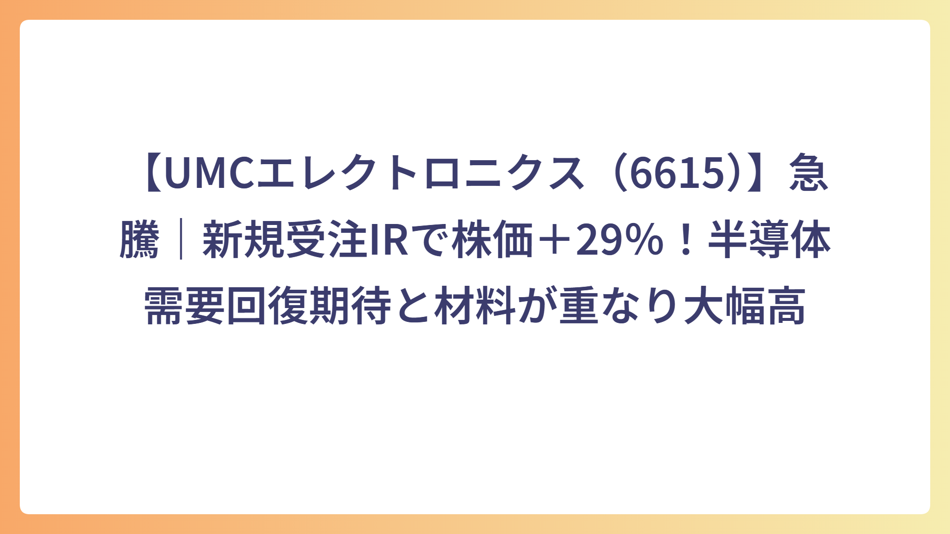 今後は、材料消化後の値動きや需給バランスを見極めながら、冷静な対応が求められる局面といえそうです。