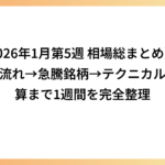 本記事では、この1週間に投稿した市場動向・急騰銘柄・テクニカル分析・決算分析を一つの流れとして整理します。