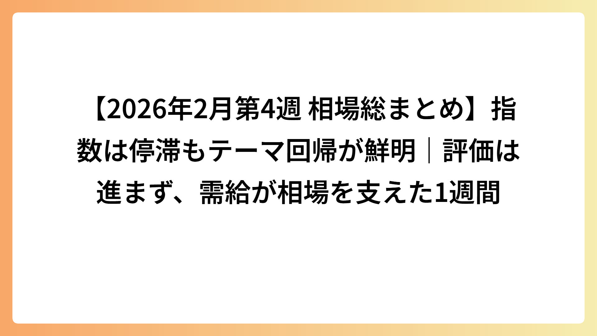 【2026年2月第4週 相場総まとめ】指数は停滞もテーマ回帰が鮮明|評価は進まず、需給が相場を支えた1週間