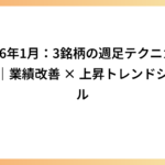 今回取り上げた3銘柄はいずれも 週足ベースのトレンド転換・継続シグナル と 業績改善の方向性 が一致する点が共通しています。